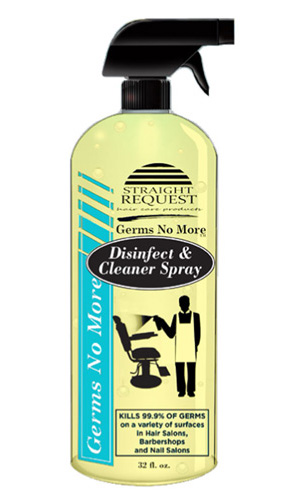 Always keep a disinfectant on hand at each station and use in your home, salon and shop. Use our Germs No More™ Disinfect & Cleaner Spray to clean the following items: styling chair, shampoo bowl and chair, styling station, dryer head and chair, nail station, waiting area, countertops and much more!